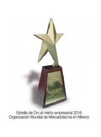 - Estrella de Oro al mérito empresarial 2016 por parte de la Organización Mundial de Mercadotecnia en México